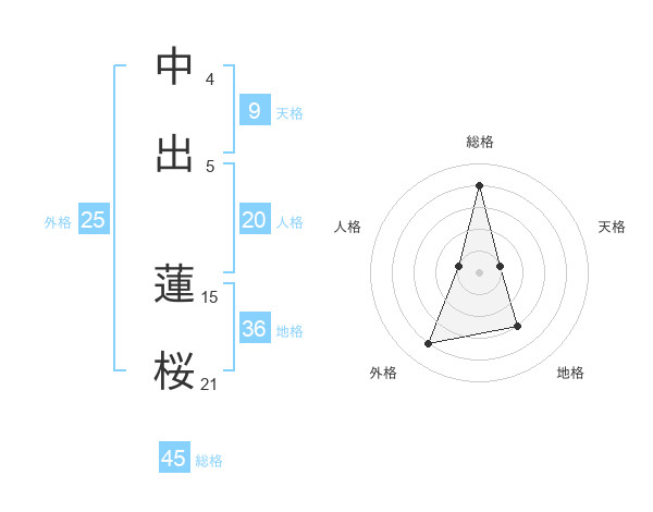 中出 蓮桜さんの外格は25画の4点!