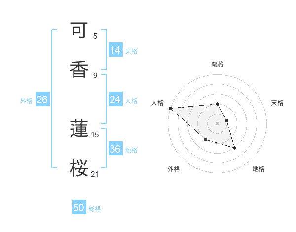 可香 蓮桜さんの総格は50画の2点!
