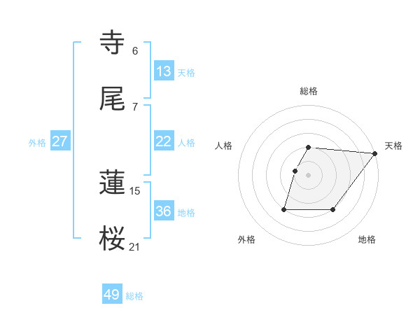 寺尾 蓮桜さんの天格は13画の5点!