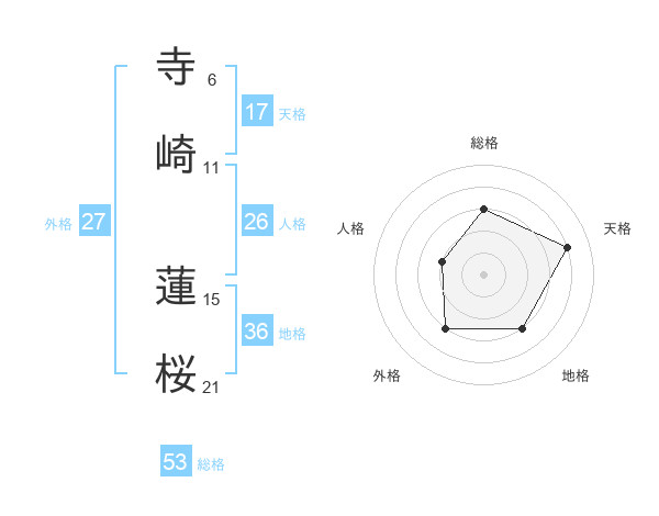 寺崎 蓮桜さんの総格は53画の3点!