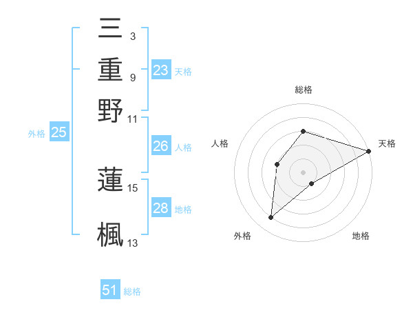 三重野 蓮楓さんの総格は51画の3点!