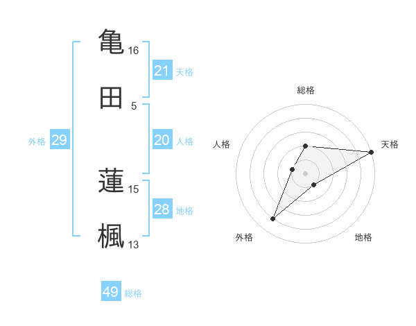 亀田 蓮楓さんの外格は29画の4点!