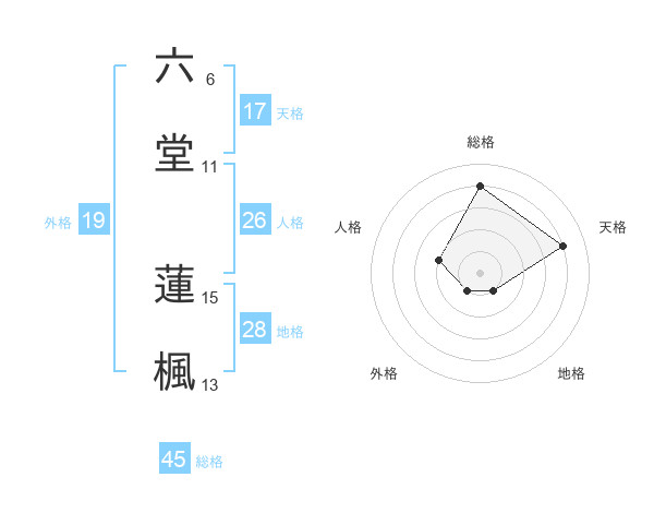 六堂 蓮楓さんの総格は45画の4点!