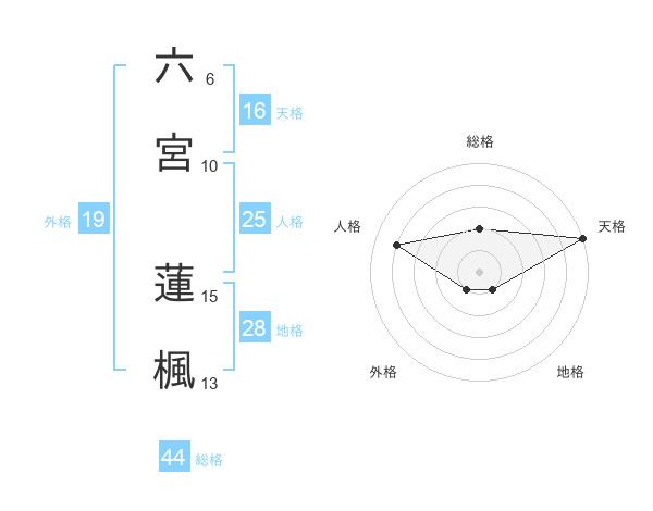 六宮 蓮楓さんの天格は16画の5点!