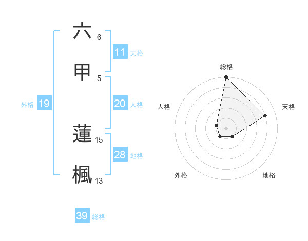 六甲 蓮楓さんの総格は39画の5点!
