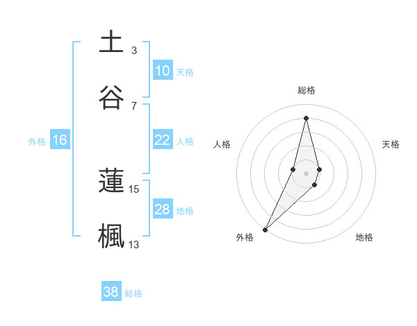 土谷 蓮楓さんを姓名の画数から五運を鑑定