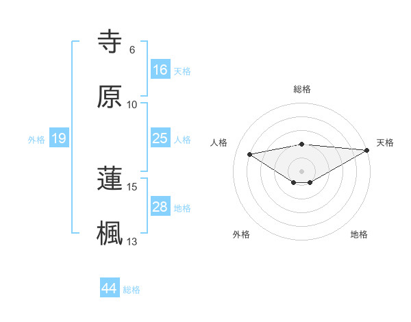 寺原 蓮楓さんの天格は16画の5点!