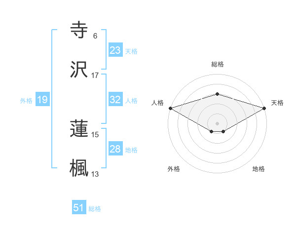 寺沢 蓮楓さんの総格は51画の3点!