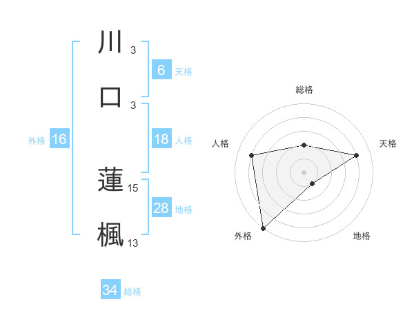 川口 蓮楓さんを姓名の画数から五運を鑑定