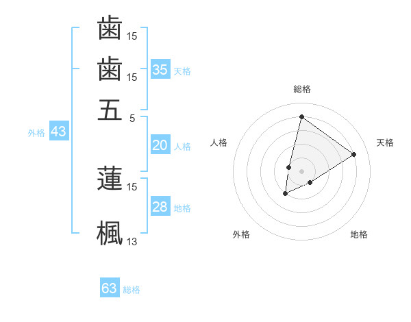 歯歯五 蓮楓さんの総格は63画の4点!