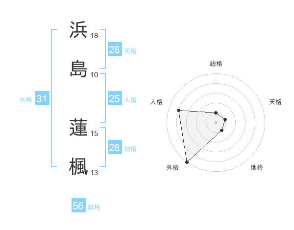 浜島 蓮楓さんの外格は31画の5点