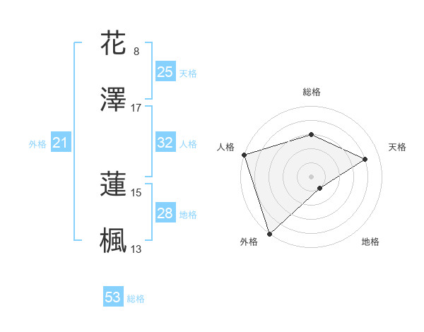 花澤 蓮楓さんの総格は53画の3点!