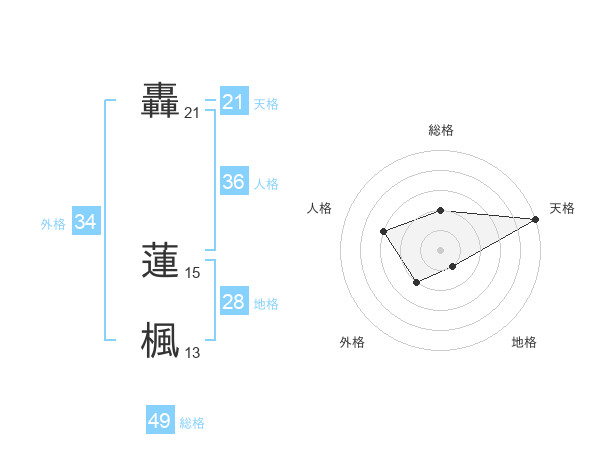 轟 蓮楓さんの総格は49画の2点!