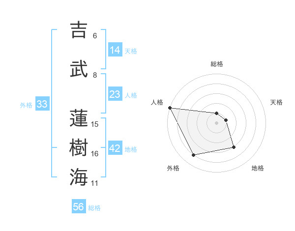 吉武 蓮樹海さんを姓名の画数から五運を鑑定