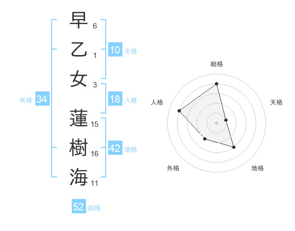 早乙女 蓮樹海さんの総格は52画の4点