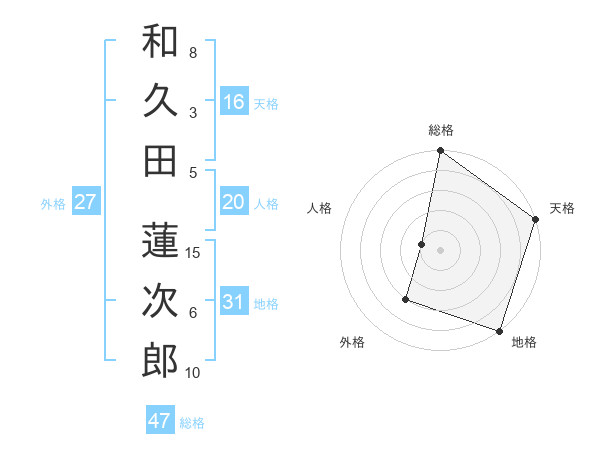 和久田 蓮次郎さんの総格は47画の5点!