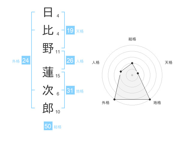日比野 蓮次郎さんを姓名の画数から五運を鑑定