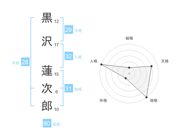 黒沢 蓮次郎さんを姓名の画数から五運を鑑定