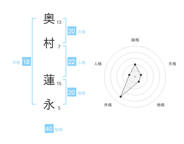 奥村 蓮永さんの地格は20画の1点!