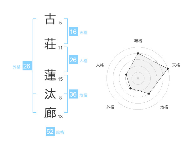 古荘 蓮汰廊さんを姓名の画数から五運を鑑定
