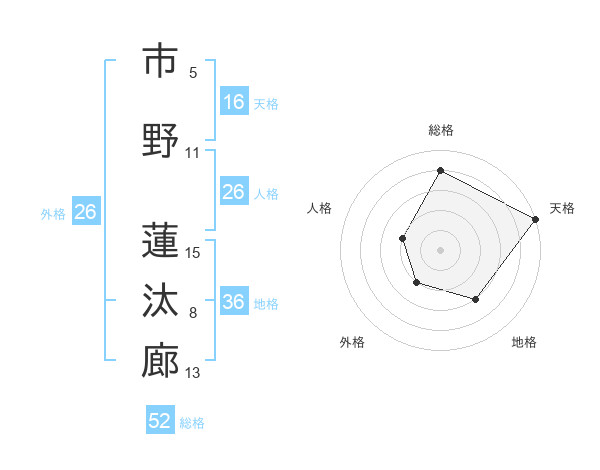 市野 蓮汰廊さんを姓名の画数から五運を鑑定