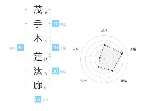 茂手木 蓮汰廊さんの総格は53画の3点!