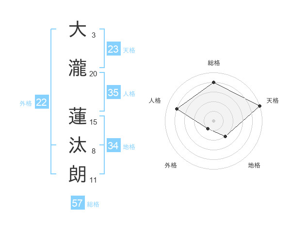 大瀧 蓮汰朗さんの総格は57画の4点!