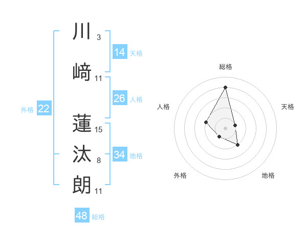 川﨑 蓮汰朗さんの総格は48画の4点!