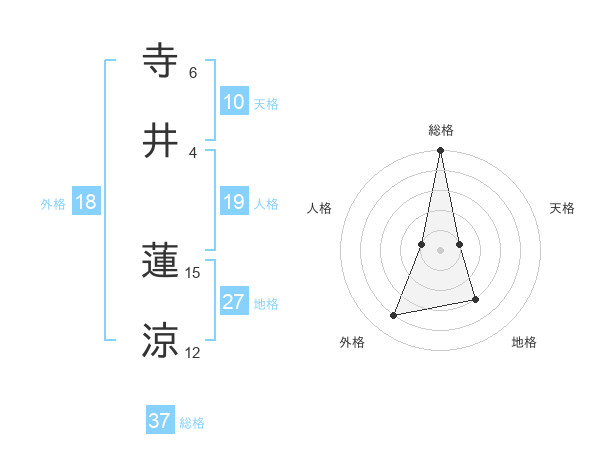 寺井 蓮涼さんの総格は37画の5点!