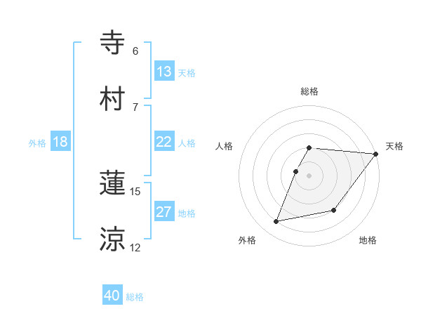 寺村 蓮涼さんを姓名の画数から五運を鑑定