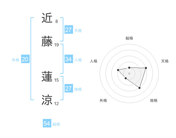 近藤 蓮涼さんの地格は27画の3点