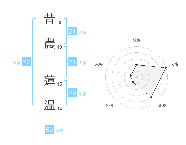 昔農 蓮温さんを姓名の画数から五運を鑑定
