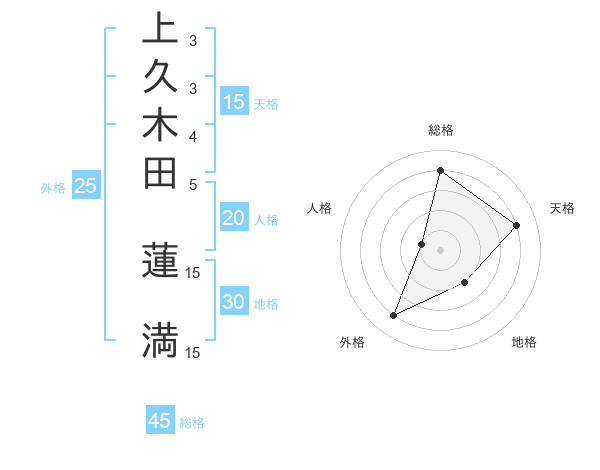 上久木田 蓮満さんを姓名の画数から五運を鑑定