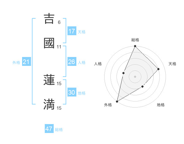 吉國 蓮満さんを姓名の画数から五運を鑑定