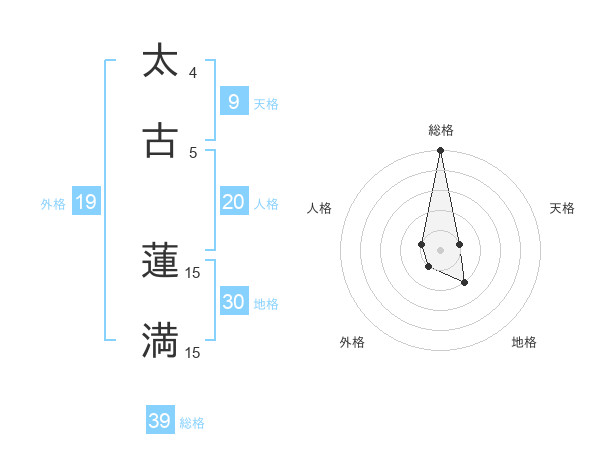 太古 蓮満さんの総格は39画の5点!
