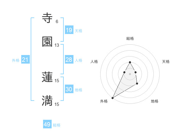 寺園 蓮満さんの外格は21画の5点!