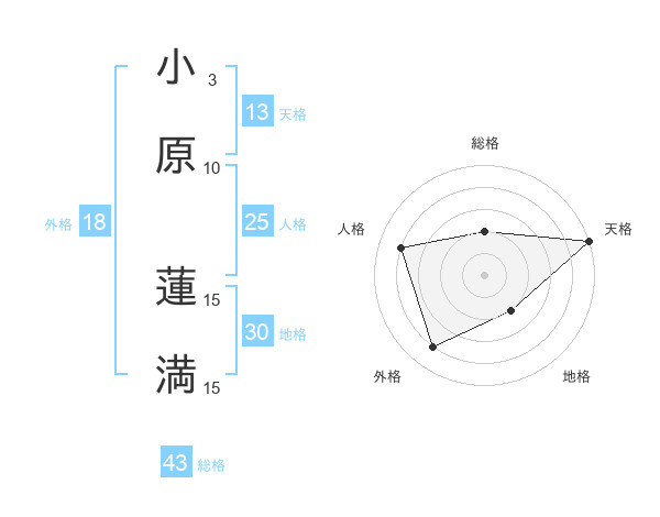 小原 蓮満さんを姓名の画数から五運を鑑定