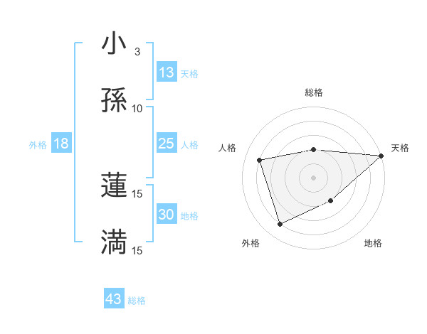 小孫 蓮満さんを姓名の画数から五運を鑑定