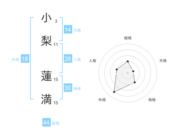 小梨 蓮満さんの総格は44画の2点!