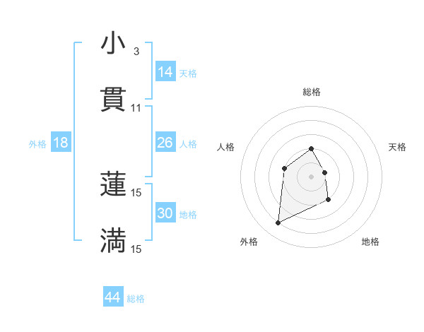 小貫 蓮満さんを姓名の画数から五運を鑑定