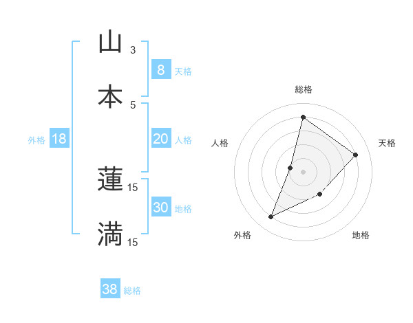 山本 蓮満さんの総格は38画の4点!