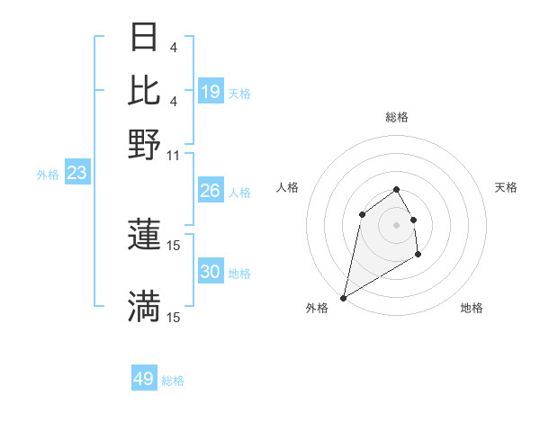 日比野 蓮満さんを姓名の画数から五運を鑑定