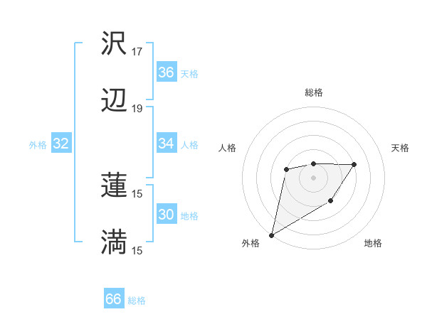 沢辺 蓮満さんの総格は66画の1点!