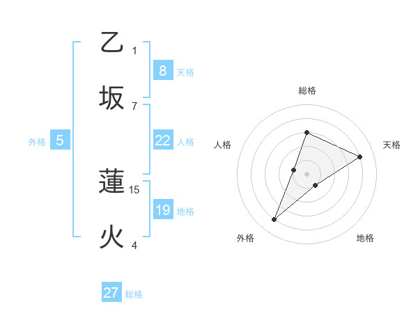 乙坂 蓮火さんを姓名の画数から五運を鑑定