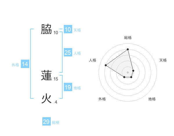 脇 蓮火さんの総格は29画の4点!