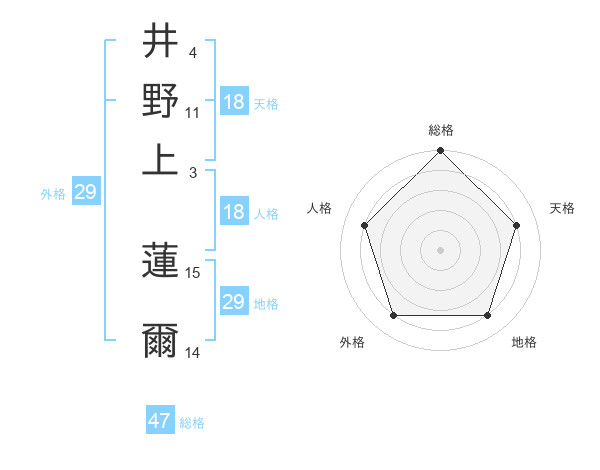 井野上 蓮爾さんを姓名の画数から五運を鑑定