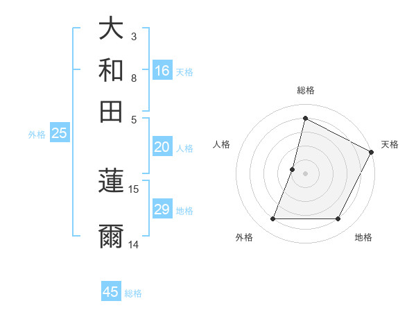 大和田 蓮爾さんを姓名の画数から五運を鑑定