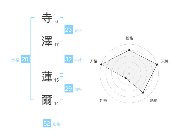 寺澤 蓮爾さんを姓名の画数から五運を鑑定