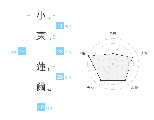 小東 蓮爾さんを姓名の画数から五運を鑑定