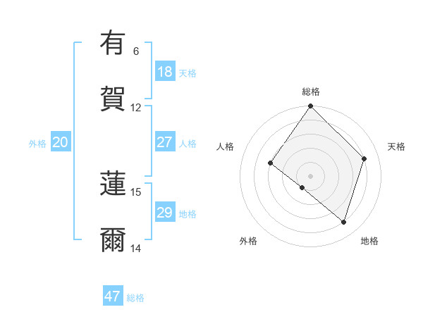 有賀 蓮爾さんを姓名の画数から五運を鑑定